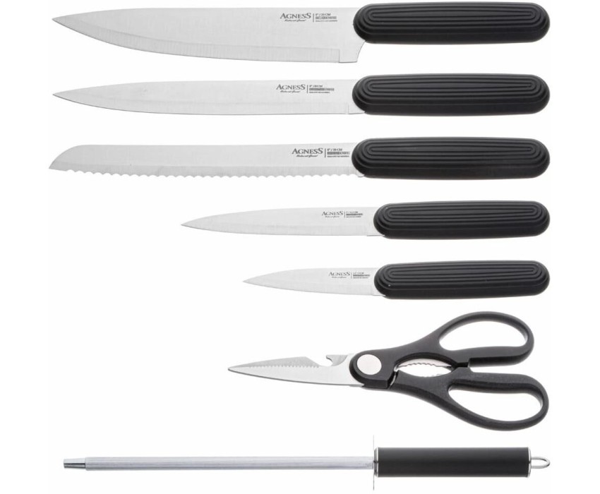 Набор ножей AGNESS НАБОР НОЖЕЙ С НОЖНИЦАМИ И МУСАТОМ НА ПЛАСТИКОВОЙ ПОДСТАВКЕ, 8 ПРЕДМЕТОВ 911-741
