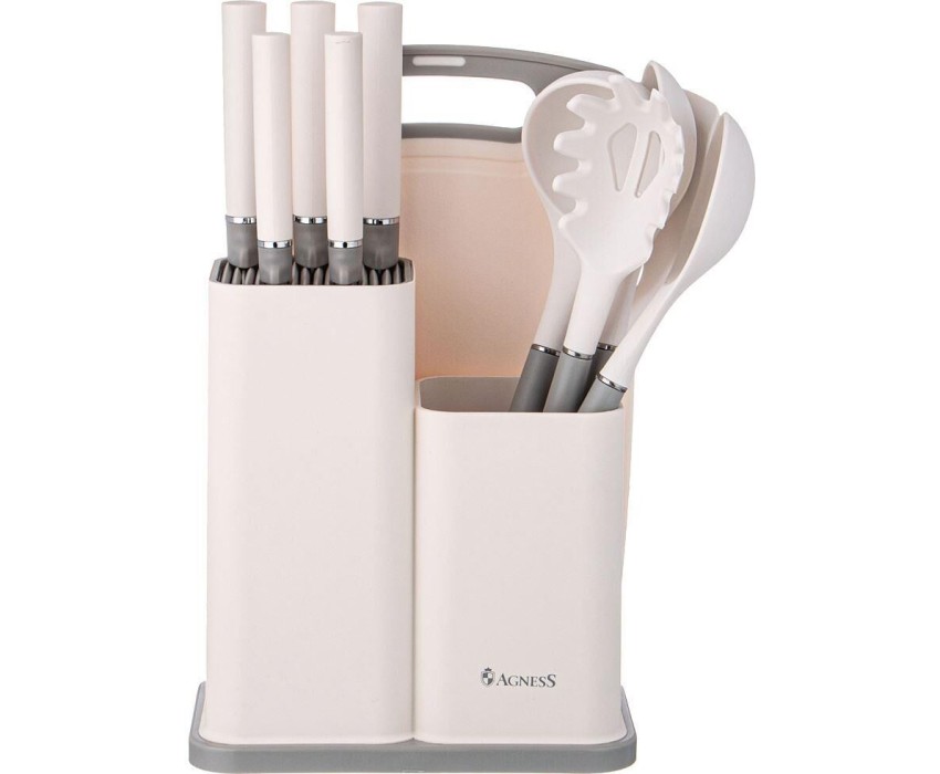 Набор кухонный AGNESS НАБОР ИЗ 12ПР: 5 НОЖЕЙ,ДОСКА,ПОДСТАВКА,ПОЛОВНИК,ЛОЖКА,ЛОПАТКА,ШУМОВКА,ЛОЖКА ДЛЯ СПАГЕТТИ 671-213