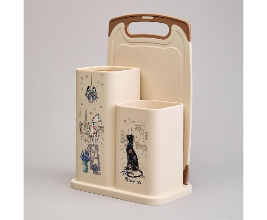 Набор кухонный AGNESS НАБОР ИЗ ПОДСТАВКИ И ДОСКИ, СЕРИЯ "LAVENDER CATS" 671-210