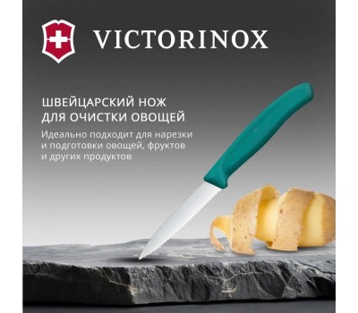 VICTORINOX Нож кухонный Swiss Classic (6.7634.C1) стальной столовый для чистки овощей и фруктов лезв.80мм серрейт. заточка зеленый