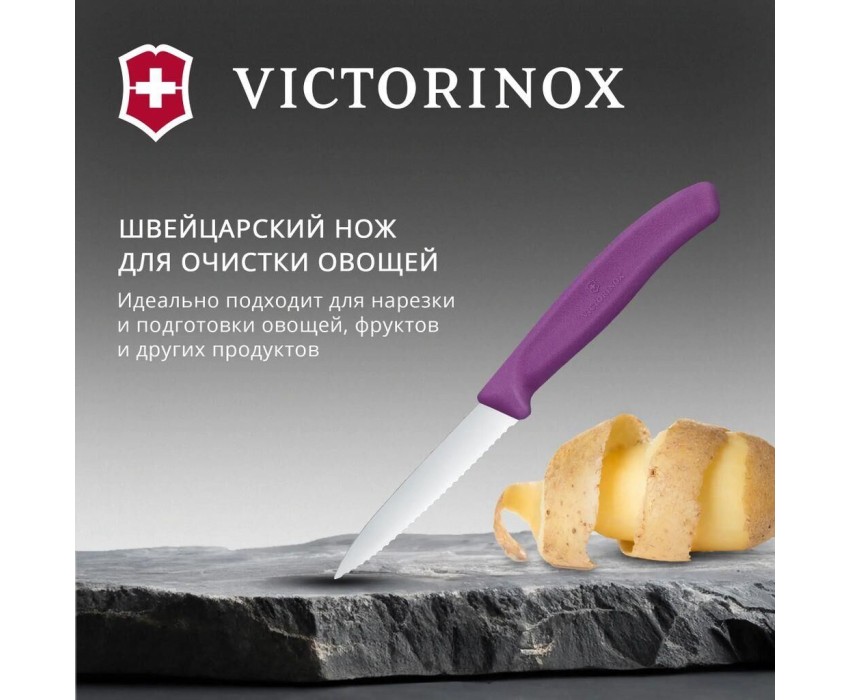 VICTORINOX Нож кухонный Swiss Classic, универсальный, для чистки овощей и фруктов, 80мм, заточка серрейтор, стальной, пурпурный [6.7635.c1]