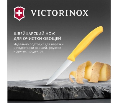 VICTORINOX Нож кухонный Swiss Classic, универсальный, для чистки овощей и фруктов, 80мм, заточка прямая, стальной, желтый [6.7608.c1]