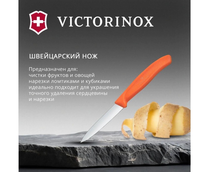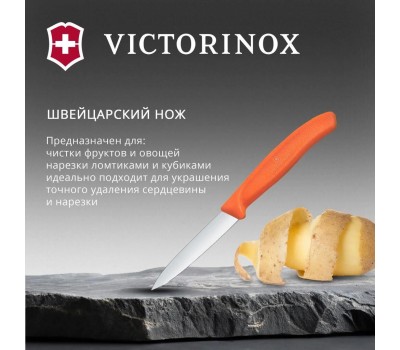 VICTORINOX Нож кухонный Swiss Classic, универсальный, для чистки овощей и фруктов, 80мм, заточка прямая, стальной, оранжевый [6.7609.c1]