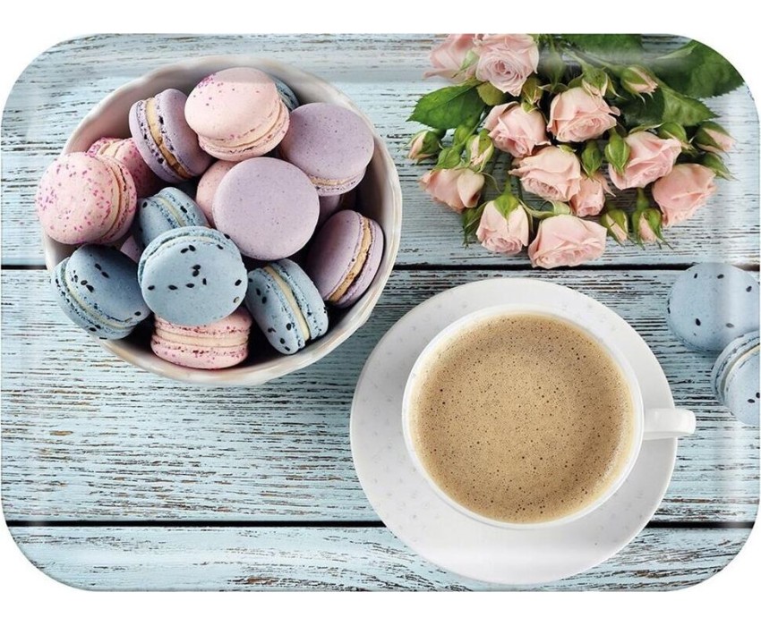 Поднос сервировочный FANTASIA, размер 28,9*18,9*1,8 см, из термостойкого пластика с дизайном Материал: термостойкий пластик, матовый. Вес 260 гр. Упаковка стикер. Толщина подноса — 4,94 мм.