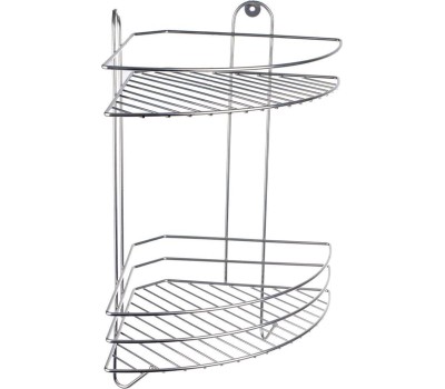 RUS-385002-2 Полка для ванной 2-х ярусная угловая, размеры 43 х 22.5 х 22.5 см, полимерное покрытие "блестящий хром"