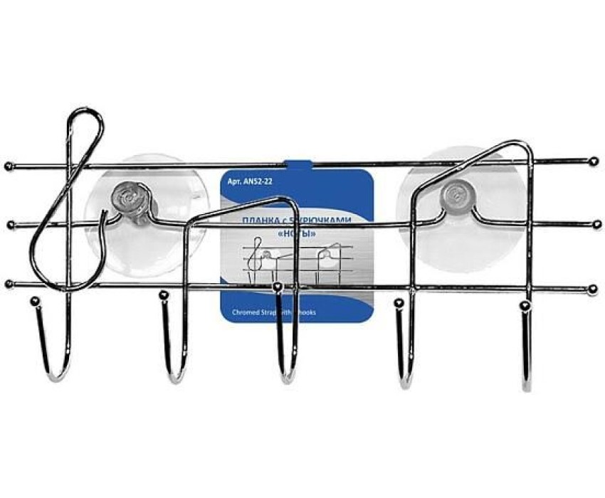 MULTIDOM Планка 5 крюч. "Ноты" на присосках. Длина 25 см. AN52-22