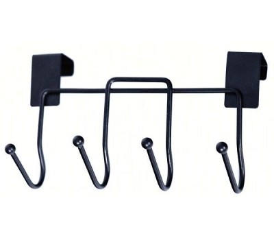 Планка с крючками в стильном черном цвете прекрасно впишется в ваш интерьер! Планку навесную с крючками удобно использовать в зонах кабинета, кухонной и ванной комнат. Ее можно разместить на дверях, дверцах шкафов, на передних панелях выдвижных ящиков. Подходит для дверей толщиной не более 2,5 см. Предназначена для размещения одежды, полотенец, сумок и других предметов. Перед первым применением рекомендуется вымыть губкой или мягкой щеткой, можно с жидким моющим средством, сполоснуть и просушить. Не рекомендуется мыть в посудомоечной машине. Изготовлено из стальной проволоки с эмалевым покрытием. Размер 18х8х11 см.