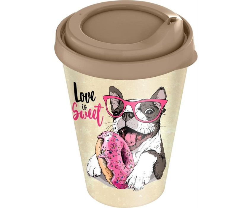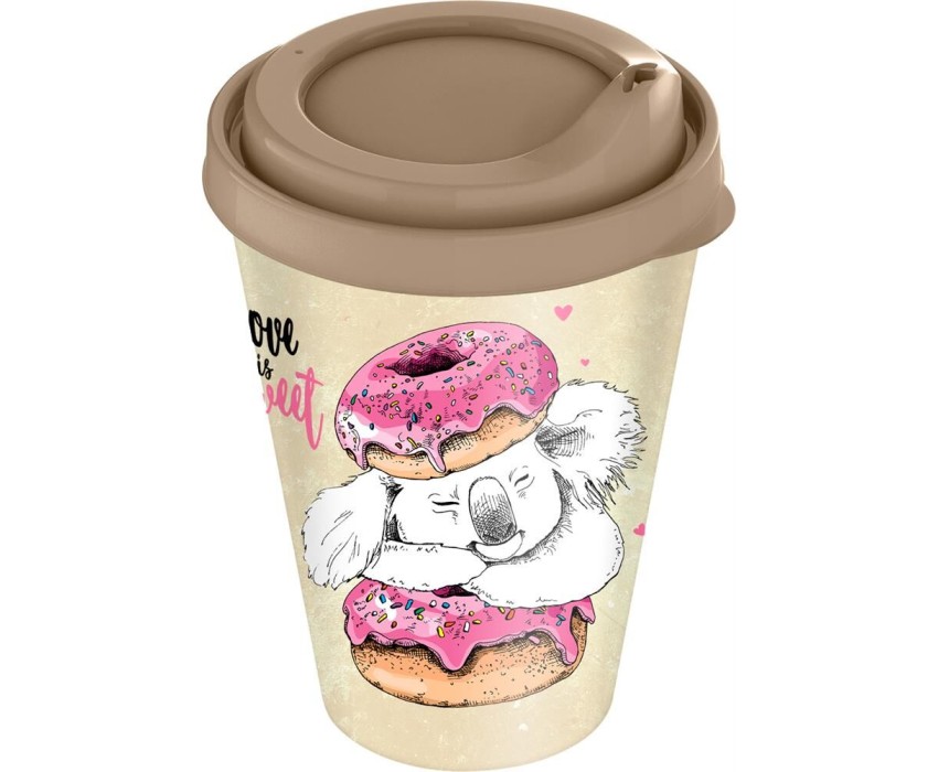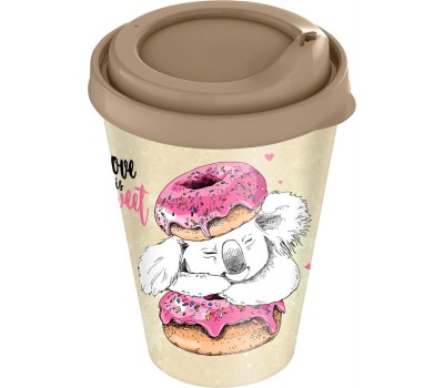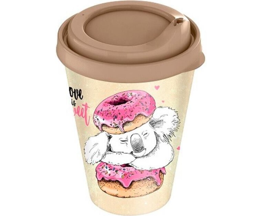 Стакан HOMVER IZI-GO с крышкой 420мл с декором (бежевый) 221133827/01