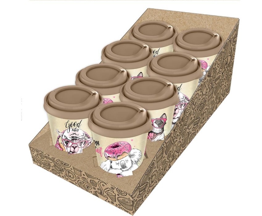 Цена за 1шт. При приобретении упаковки ее можно трансформировать в презентабельный шоубокс (3 принта - 8шт/уп). Стаканы 420 мл с крышкой имеют комфортный диаметр корпуса, удобно ложатся в руку и подходят к подстаканникам в машине. Крышка с носиком имеет язычок для удобного открывания. Использование многоразовых стаканов и кружек для напитков вместо одноразовых не только полезно для экологии, но и делает более приятным при м напитка. IML-декор наносится на весь корпус и вплавляется в изделие на этапе литья, поэтому он не стирается и долго радует глаз. Качественный полипропилен не содержит бисфенола А и подходит для СВЧ.