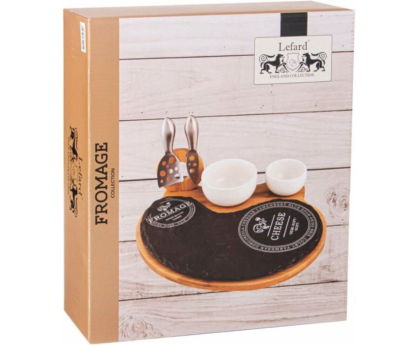 ТM Lefard коллекция «Fromage». Новый взгляд на кухню и процесс приготовления блюд. Это стиль, уют и функциональность. Предметы коллекции хороши для любителей сыра. Это фарфоровые доски с отделкой деревом, сырорезка, наборы для сыра с наборами специальных ножей. Широкий ассортимент позволит создать индивидуальную коллекцию для сервировки и украшения интерьера. Открывайте новые виды сыров, готовьте кулинарные шедевры и объединяйте за столом самых дорогих и близких людей. Изделия из качественного фарфора. Оригинальная упаковка. Прекрасный подарок. Вся продукция сертифицирована и безопасна для контакта с пищевыми продуктами. Фарфоровые элементы, сырные ножи можно смело мыть в посудомоечной машине.