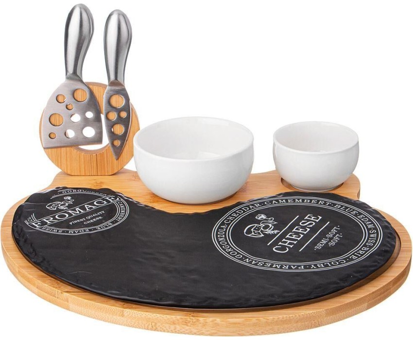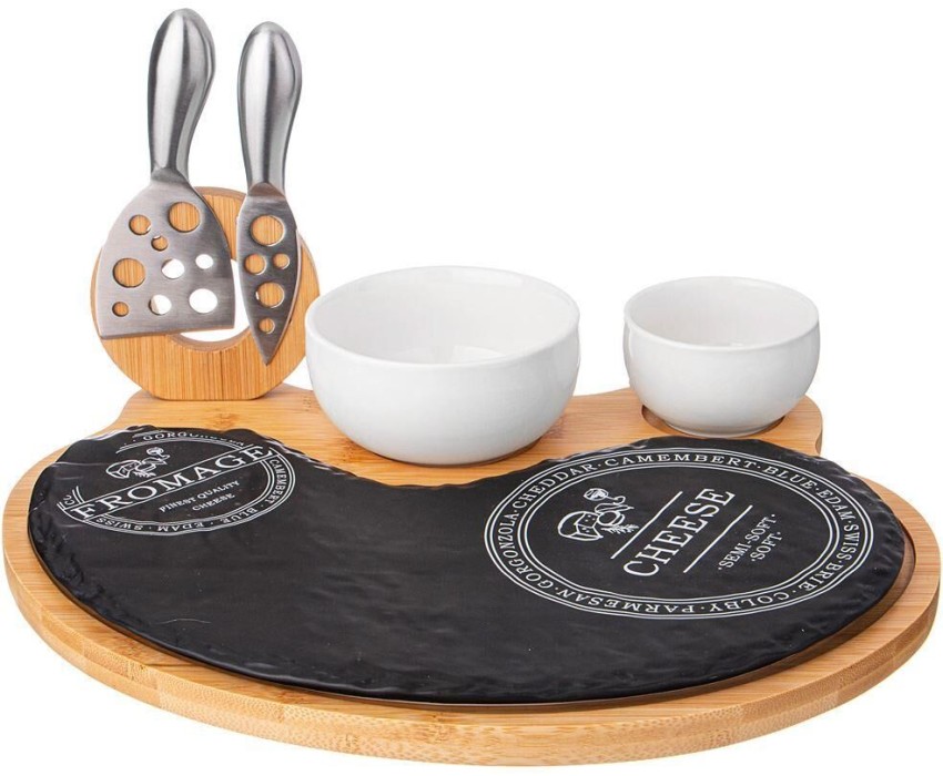 Комплектность: доска сервировочная, нож сырный - 2 шт, соусник фарфоровый - 2 шт. подставка деревянная 34*16,2 см.