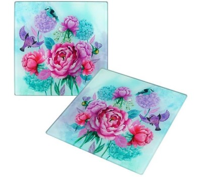 MULTIDOM Доска разделочная. Подставка под горячее "Пионы и птички". Размер 18х18 см. VL48-15