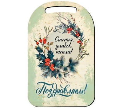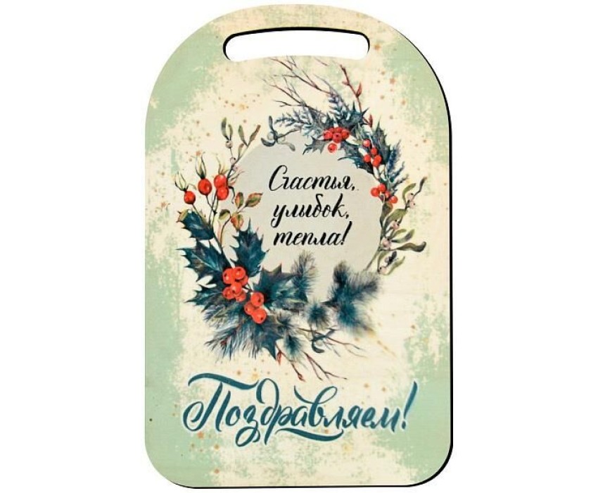 MULTIDOM Доска разделочная "Поздравляем Счастья, улыбок, тепла " 29х18,5 см. МБ2-401