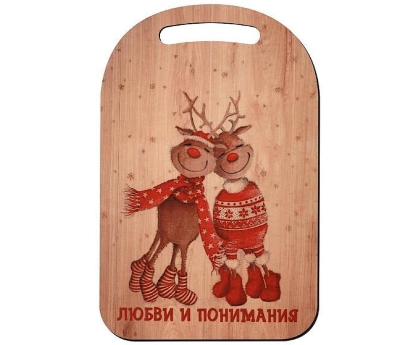 Не знаете, что подарить близким? Разделочная доска с оригинальным дизайном - это достойный подарок, который порадует любую хозяйку. Такая доска украсит кухонное пространство и привнесет праздничную атмосферу. Разделочная доска предназначена для нарезки продуктов, а также ее удобно использовать как подставку для терок и слайсеров при шинковке и нарезке овощей, фруктов, сыра и других продуктов. Изготовлено: деревянная фанера (береза). Размер 29х18,5см. Перед и после использования рекомендуется промыть в теплой проточной воде, можно с использованием жидких моющих средств и просушить. ВНИМАНИЕ! НЕЛЬЗЯ МЫТЬ В ПОСУДОМОЕЧНОЙ МАШИНЕ.
