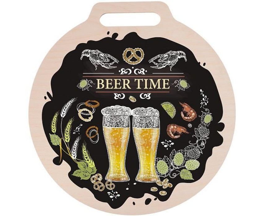 MULTIDOM Разделочная доска "BEER TIME". Диаметр 26см # МТ18-31