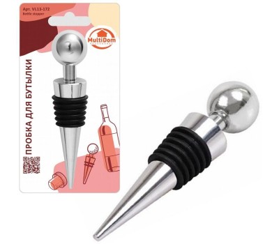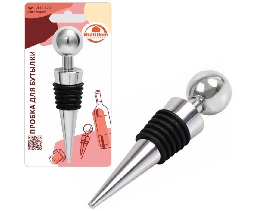 Пробка для бутылки - стильный аксессуар на вашей кухне. Многоразовая пробка предназначена для закупоривания открытых бутылок с вином, маслом, уксусом и другими жидкостями. Пробка для бутылки имеет скошенную конусообразную форму, подходящую для различного диаметра горлышка бутылок, что делает её универсальным практичным предметом. Пробка имеет силиконовый ободок - уплотнитель, благодаря которому она плотно фиксируется в горлышке бутылки и защищает содержимое от выветривания, окисления, попадания пыли и посторонних запахов. Перед первым использованием и после каждого применения промыть в теплой воде, можно с жидким моющим средством, сполоснуть проточной водой и просушить. Нельзя мыть в посудомоечной машине. Изготовлено из пластмассы (ABS) с хромированным покрытием, силикона. Размер 9х2 см.