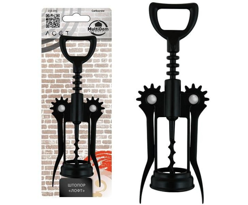 Используется для открывания бутылок с пробками. Ручка штопора, имеющая специальную форму, позволяет открывать также и бутылки с крышками. Штопор имеет рычажный механизм с «крыльями», который позволяет легко, без усилий открыть любую бутылку. Перед первым использованием вымыть в теплой воде, можно с жидким моющим средством, сполоснуть проточной водой и просушить. Не рекомендуется мыть в посудомоечной машине. Изготовлен из металла с эмалевым покрытием, пластмассы. ИНСТРУКЦИЯ ПО ПРИМЕНЕНИЮ: Перевести рычаги штопора в нижнее положение. Ввернуть штопор в пробку, вращая ручку по часовой стрелке. При этом рычаги самостоятельно переместятся в верхнее положение. Для извлечения пробки из бутылки опустить рычаги в нижнее положение.