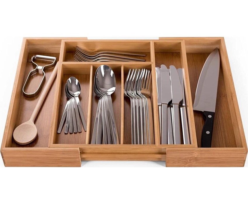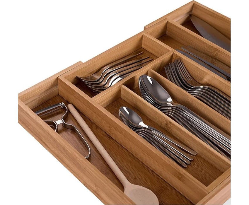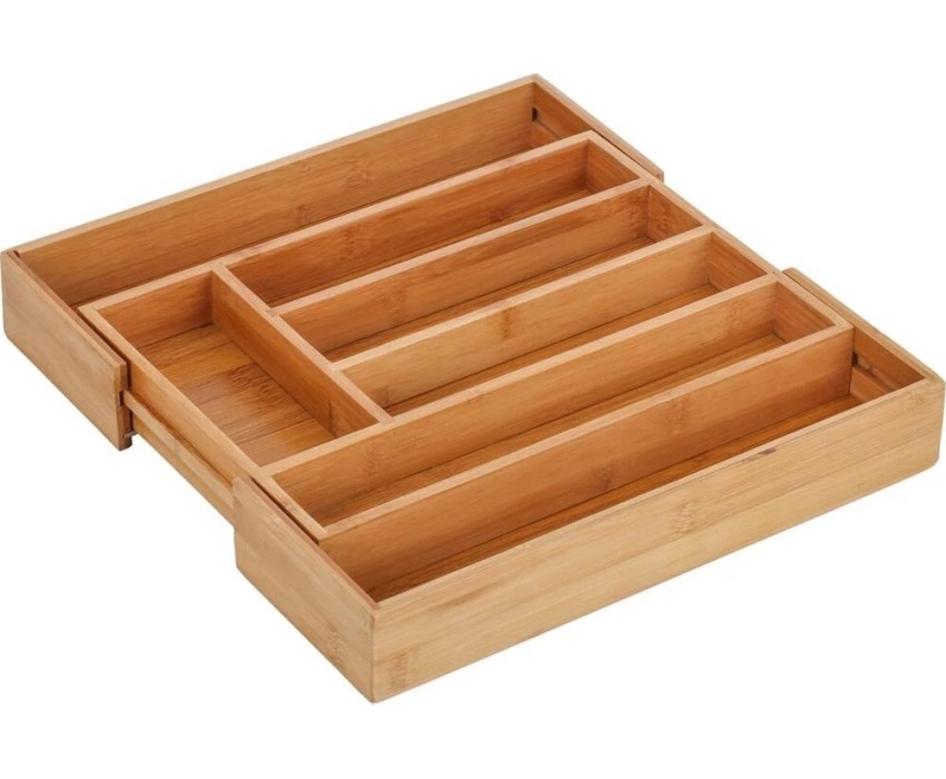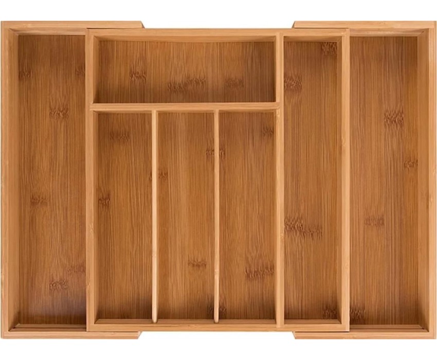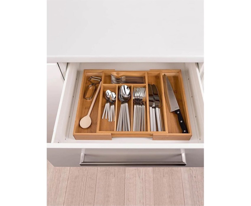 UniStor JERRY Лоток раздвижной из 7-ми секций для столовых приборов встраиваемый в выдвижной ящик кухонного гарнитура. Размер: 25,5-37,5х33х5см Материал 100% бамбук. Длина лотка в сложенном виде - 25,5 см, в разложенном - 37,5 см. Вес 1.18 кг