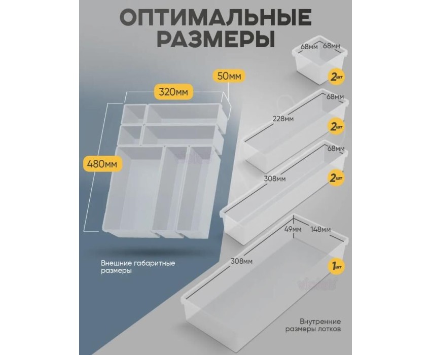 Лотки для хранения "Комбо 4" (белый). Размеры (ДхШхВ) 320х160х78мм.