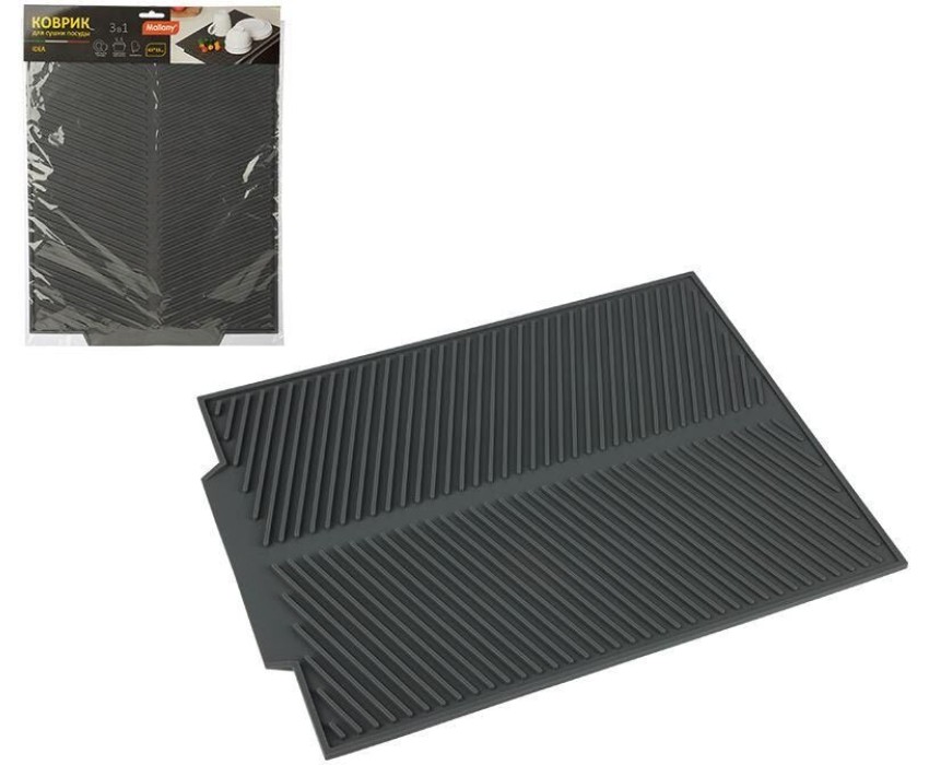 Силиконовый коврик для сушки посуды 3 в 1: коврик для сушки, подставка под горячее, прихватка Благодаря ребристой поверхности вода стекает в желобки, оставляя посуду сухой. Занимает минимум места на рабочей поверхности. Размеры: 43*33 см Материал: силик