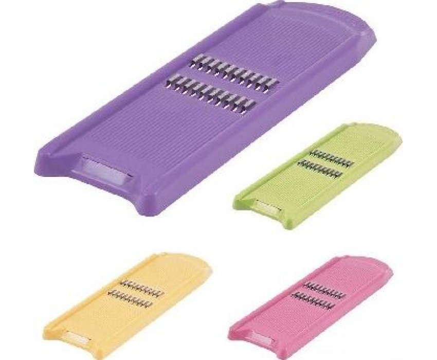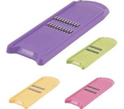 Овощерезка,1 насадка Материал лезвия: Нержавеющая сталь; Материал рукояти: Пластик; Длина-26см, ширина-8,5см. Цвет: в ассортименте Упаковка: цветная коробка Овощерезка, выполненная из высококачественного пластика и нержавеющей стали, обладает огромным диапазоном применения и занимает очень мало места на кухне. С ее помощью можно нашинковать сырые и вареные овощи и фрукты, натереть морковь и многое другое.