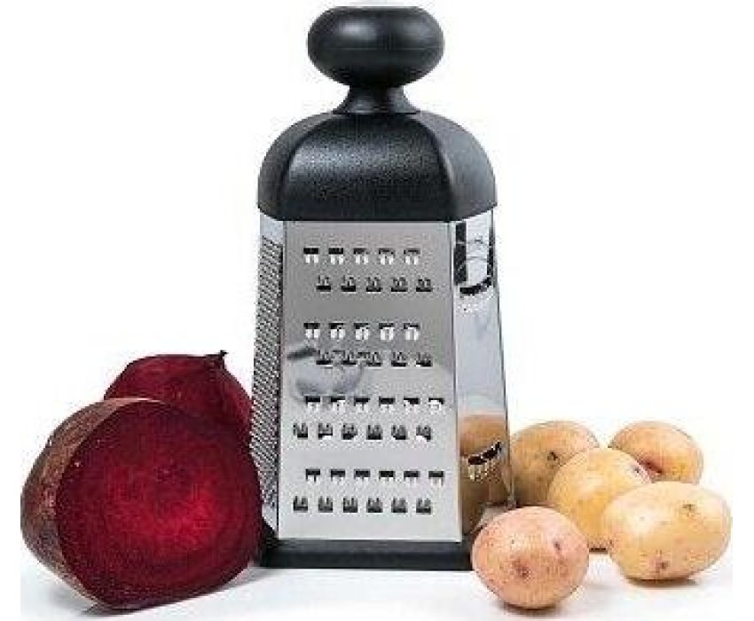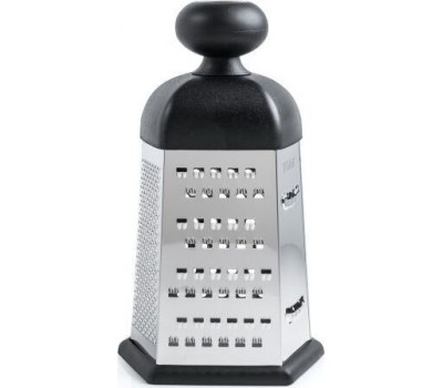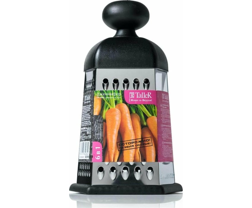 Высота 23 см.Основание 11,5 х 13,0 см 6 видов лезвий: крупная терка, средняя терка, мелкая терка, шинковка,фигурная шинковка, шредер.Удобная форма ручки и специальный материал обеспечивают надежную фиксацию в руке.Нескользящий силиконовый протектор на ос