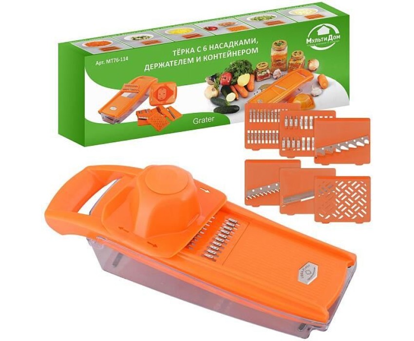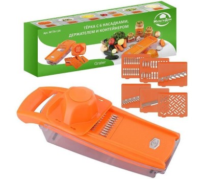 MULTIDOM Терка с 6 насадками, держателем и контейнером. Размер 36х7,8х13 см. МТ76-114