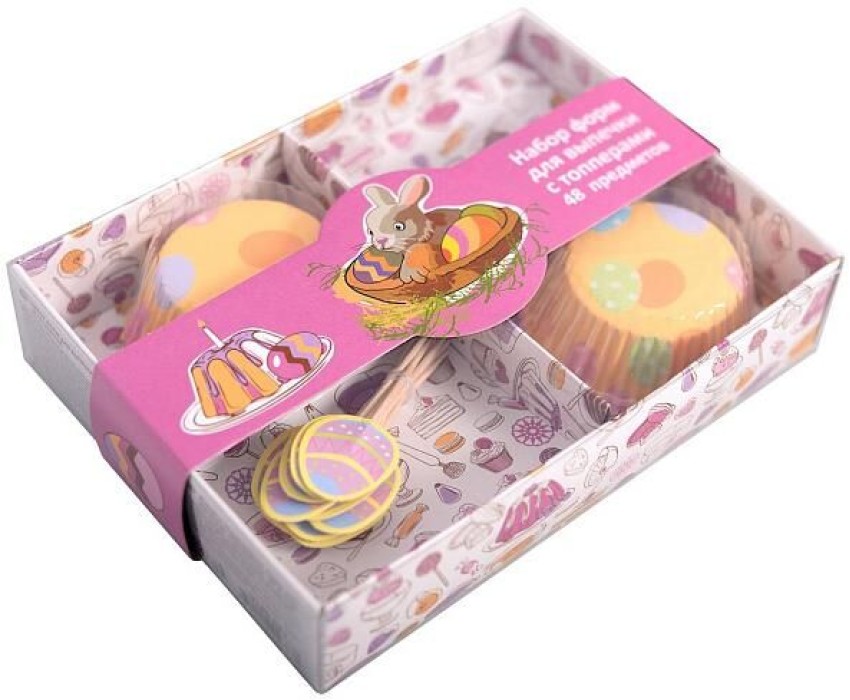 MULTIDOM Набор форм для выпечки с топперами "Пасхальный". 48 предметов. Диаметр (верх/низ) 7 см/5 см, высота 3,5 см VL80-525