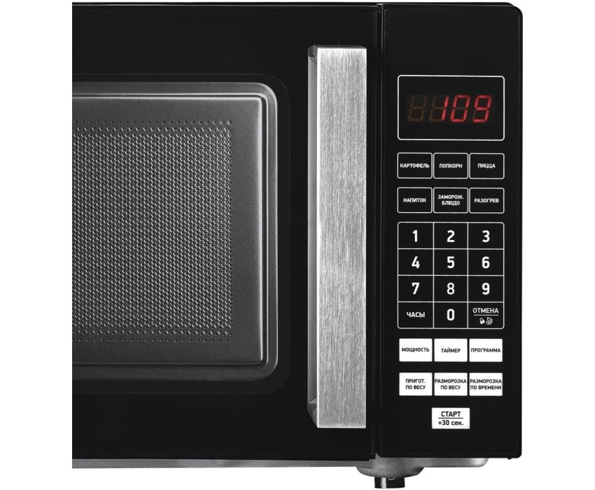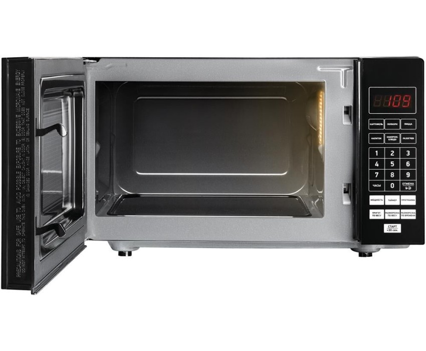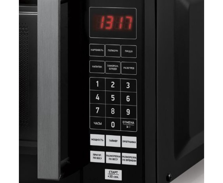 Объем камеры (л) 20. Тип управления электронный. Мощность микроволн (Вт) 700. Диаметр поворотного стола (мм) без поворотного стола, 270mm x 270mm. Материал поворотного стола стеклокерамика. Внутреннее покрытие эмаль. Тип открывания дверцы ручка. Внутреннее освещение Да. Звуковой сигнал Да. Микроволны Да. Цифровой дисплей Да. Светящиеся символы дисплея Да. Класс электробезопасности 1. Энергопотребление в рабочем режиме (Вт) 1200. Входное напряжение питания (В/Гц) 220-230(50). Наличие заземляющего контакта на вилке Да. Цвет корпуса черный. Материал передней панели Пластик. Отделка передней панели Пластик.