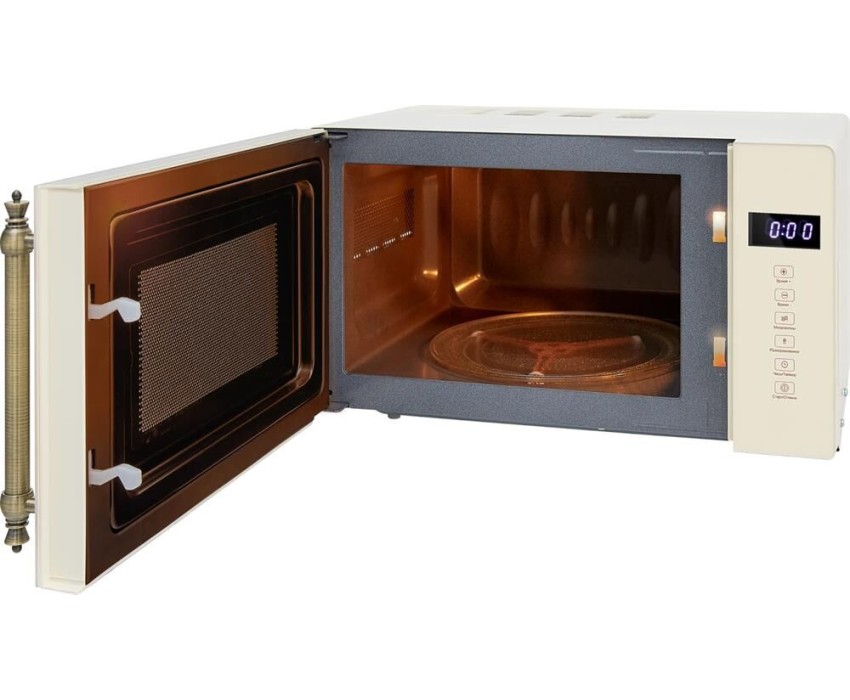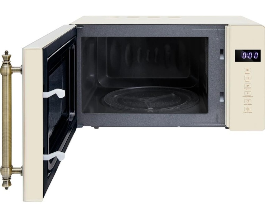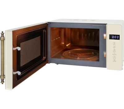 Объем 20 л, Полностью сенсорное управление Touch Control, Мощность микроволн 700 Вт, Дисплей, Часы, Таймер, Разморозка, Звуковой сигнал, Подсветка, Цвет: бежевый, Цвет ручки — бронза, Легкая очистка