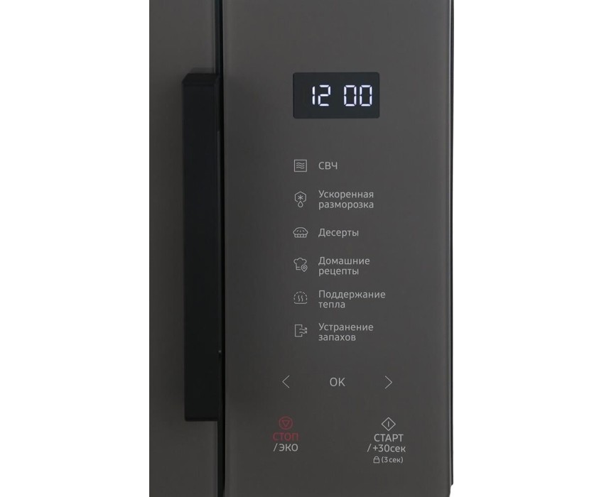 Объем 23 л Мощностьмикроволн 800 Вт Типуправления сенсорное Открываниедверцы ручка Направление открытия дверцы справа-налево Особенности корпуса дисплей, часы Управление быстрый старт, звуковой сигнал окончания приготовления, кнопка +30 секунд, отключение сигнала, регулировка мощности Количество ступеней регулировки мощности 6 шт Внутреннее покрытиекамеры биокерамическая эмаль Диаметр поворотногостола 288 мм. Цвет антрацит Размеры (ШхВхГ) 48.9 х 27.5 х 36.3 см.