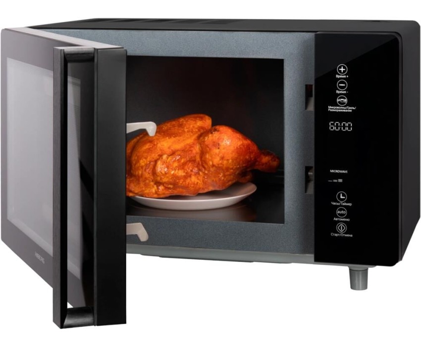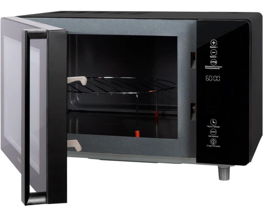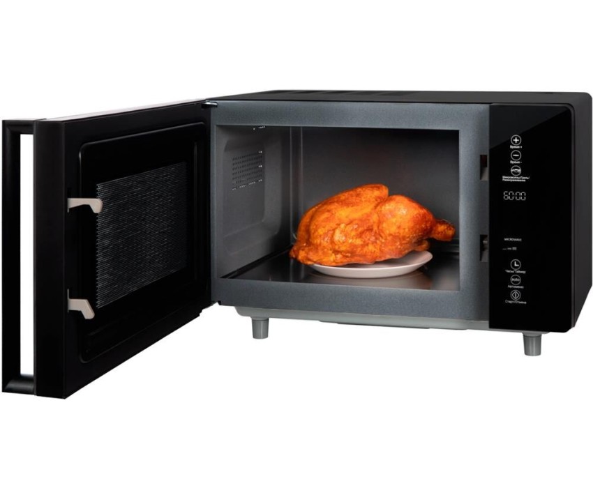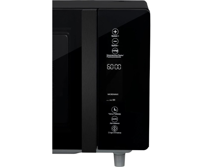 объем 25 л, мощность микроволн 900 Вт, внутреннее покрытие камеры керамика, переключатели сенсорные, режимы работы гриль, микроволны + гриль, разморозка, дополнительные режимы автоматическая разморозка, автоматический разогрев, звуковой сигнал отключения, особенности без поворотного стола, блокировка от детей, дисплей, ШхВхГ 50.50х33х38 см