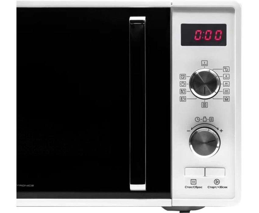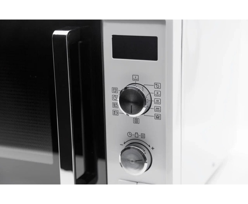 23 Литра, цвет - белый, мощность 800W, 6 автопрограмм, 11 режимов мощности, гриль - 1000Вт, функция разморозки по весу, быстрый старт, таймер. Сенсорное управление. Потребляемая мощность микроволновой печи (Вт) - 1250. Частота - 2450 MHz. Внутренний размер (ВхШхГ) (мм) - 314*347*201, размер коробки - 536*436*330. Вес (n/g) - 14,5кг