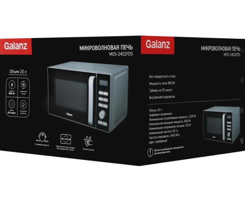 Микроволновая печь GALANZ MOS-2402FDS 20л. 800Вт серебристый
