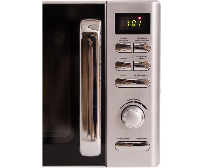 Мощность микроволн, Вт 800 Объем, л 20 Количество уровней мощности 6 Таймер, мин 30 Тип управления электронный Диаметр поворотного стола, см 25,5 Цвет серебристый Звуковой сигнал да Размер изделия, см 45,2 35,3 26,2 Режим размораживания