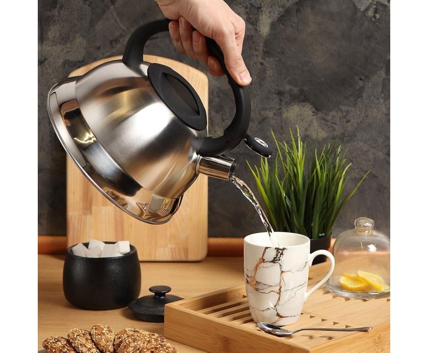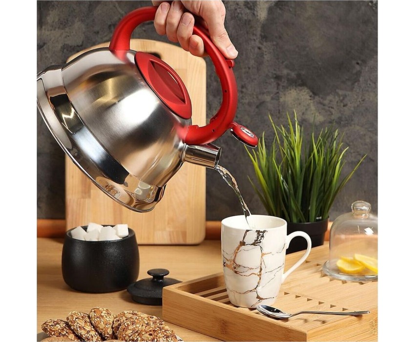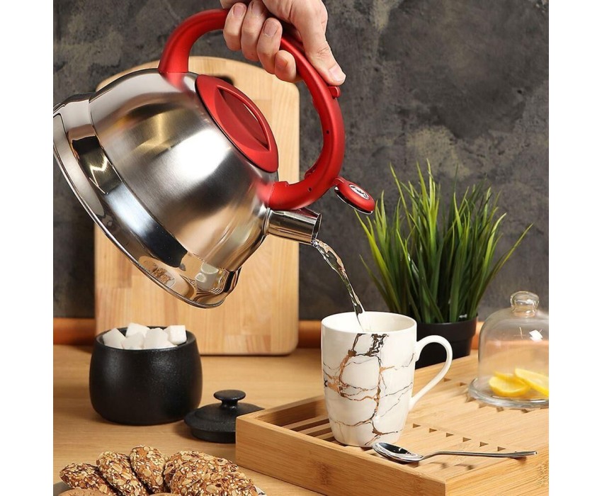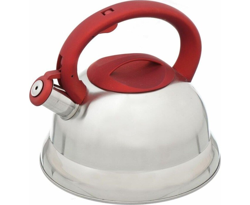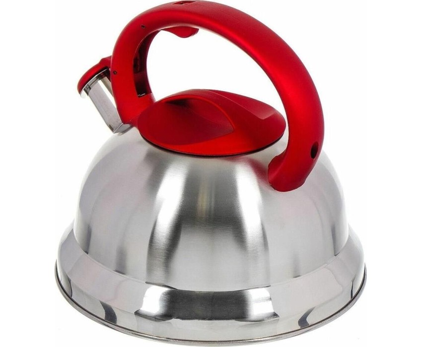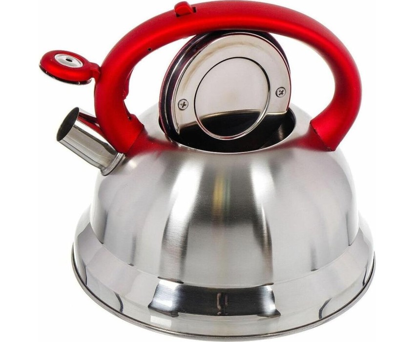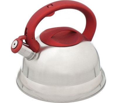 Чайник нерж, 2.8 л, свист, мат, ручк с силик покр, красн,