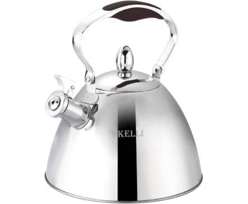 Металлический чайник со свистком Объем: 3 л Высококачественная нержавеющая сталь Капсульное дно Силиконовая ручка не нагревается Удобная крышка носика со свистком Свистит при закипании Зеркальная полировка Подходит для всех видов плит