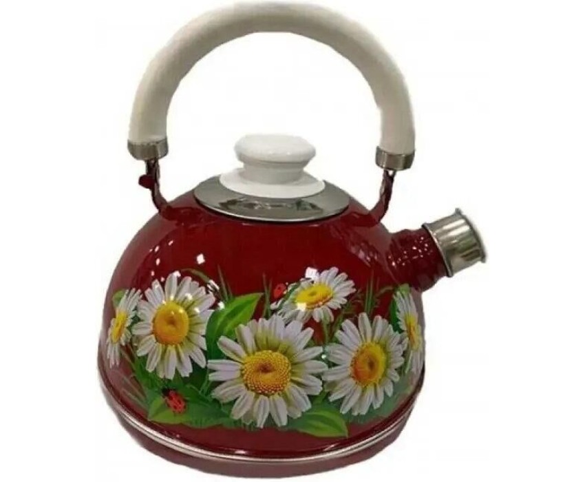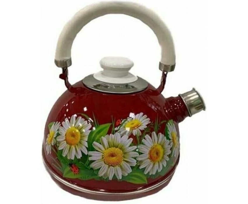 Чайник эмалированный со свистком. Внешнее трехслойное эмалевое покрытие не вступает во взаимодействие с пищевыми продуктами, защищает сталь от коррозии, придает посуде гладкую стекловидную поверхность и надежно защищает от кислот и щелочей. Подвижная металлическая белая ручка. Свисток съемный из нержавеющей стали. Крышка плотно прилегает к краю. Может быть использован на всех типах кухонных плит: электрических, газовых, керамических, индукционных. Подходит для мытья в посудомоечной машине.
