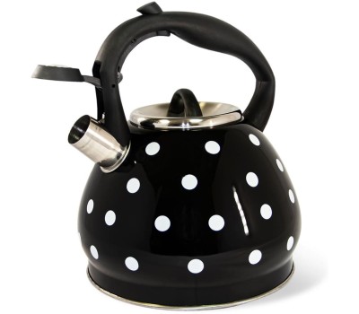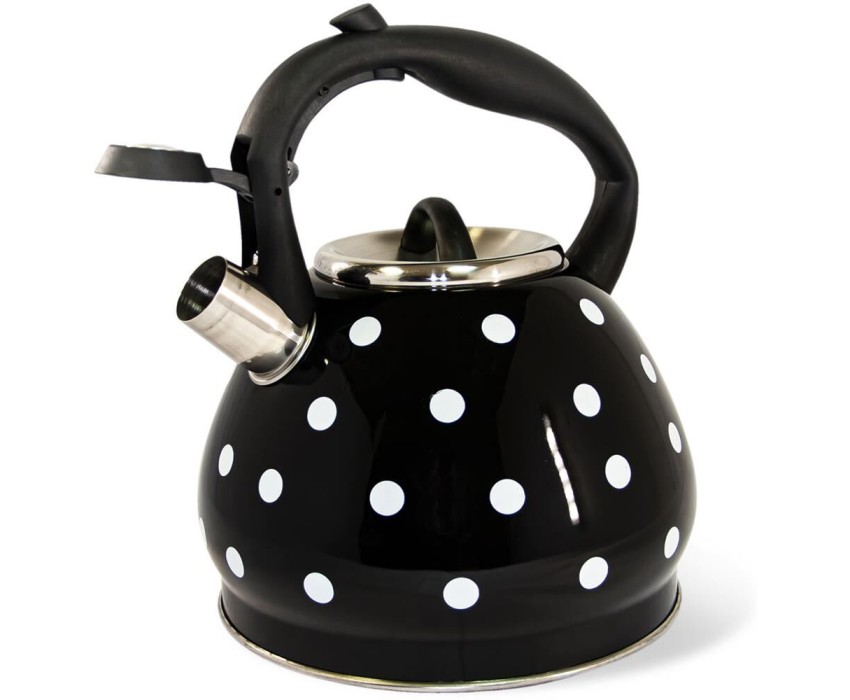 Объем: 3,0 л Материал: нержавеющая сталь 201 класса (корпус) и 430 класса (дно) Толщина стенок: 0,4 мм Корпус в форме яблока в горошек Нейлоновая ручка с рычагом для открывания носика Дно капсульное 0,5мм алюминия + 1,5мм железа + 0,5мм алюминия