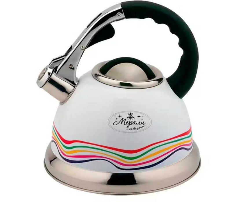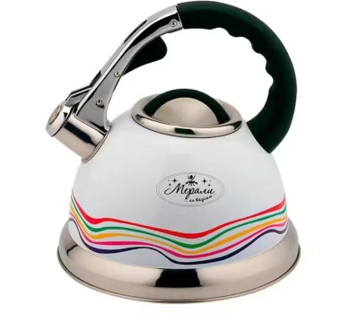 3,2- литровый чайник из нержавеющей стали со свистком, ручка цинковый сплав + нейлон, с рычагом для открывания носика. Толщина стенок: 0,35 мм. Дно капсульное 0,5мм алюминий +1,5мм железа + 0,5 мм алюминий Верхняя часть кремового цвета с полоской-индикатором, меняющей цвет при нагревании; нижняя часть – зеркальная полировка.