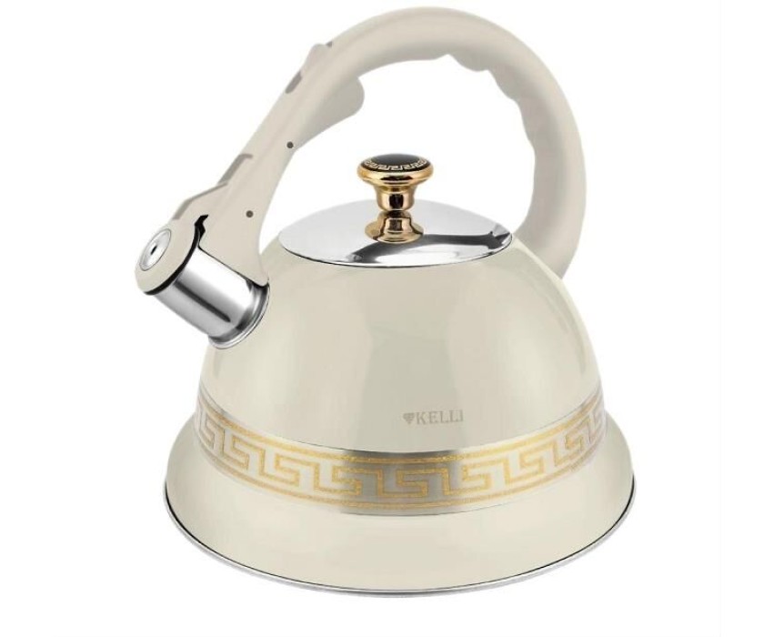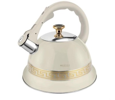 Металлический чайник со свистком Объем: 3,5 л Высококачественная нержавеющая сталь Многослойное капсульное дно Эргономичная ручка не нагревается ECO FRIENDLY Свистит при закипании Зеркальная полировка Подходит для всех видов плит Цвет кремовый