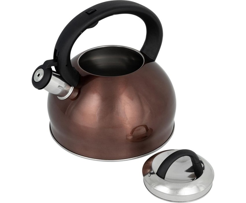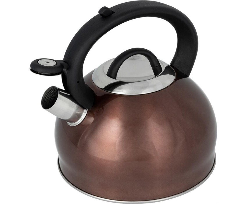 P-650187 Napoli Чайник со свистком, 3л. Модель выполнена по специальной пресс-форме с толщиной боковых стенок 0,4мм. Трехслойное дно, выполненное по технологии капсулирования, не деформируется и служит для равномерного распределения тепла. Ненагревающаяся нейлоновая ручка с кнопкой для открывания носика. Безопасный и громкий свисток вовремя проинформирует, что вода закипела. Высокопрочное покрытие чайника сохраняет отличный внешний вид изделия намного дольше.