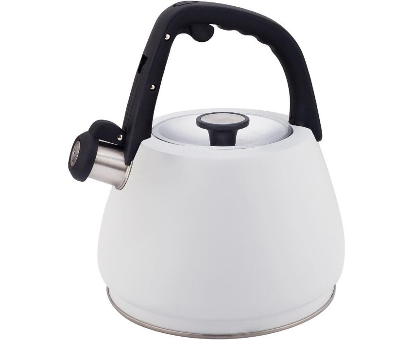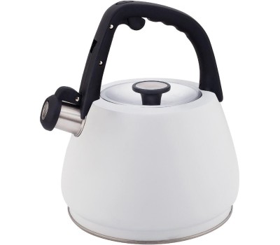 Чайник со свистком, 3,0 л, нержавеющая сталь, ИНДУКЦИОННОЕ КАПСУЛИРОВАННОЕ ДНО, курковый механизм, внешнее покрытие – антипригарное цветное покрытие, устойчивое к высоким температурам, фиксированная бакелитовая ручка.