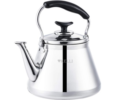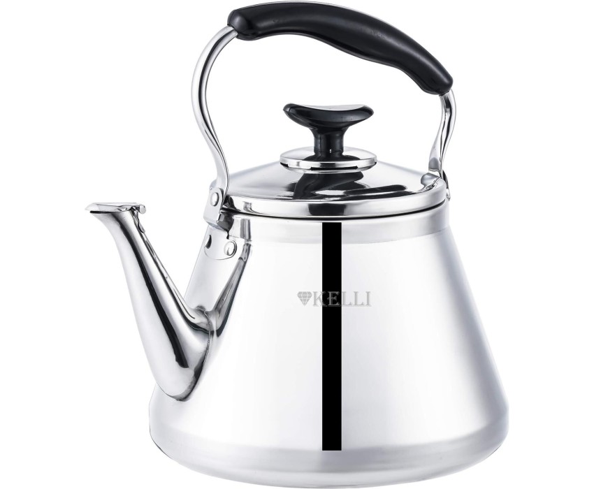 Металлический чайник со свистком; Объем: 3л; Высококачественная нержавеющая сталь; Зеркальная полировка; Подвижная ручка, не нагревается; Свистит при закипании, свисток в крышке; Подходит для всех видов плит