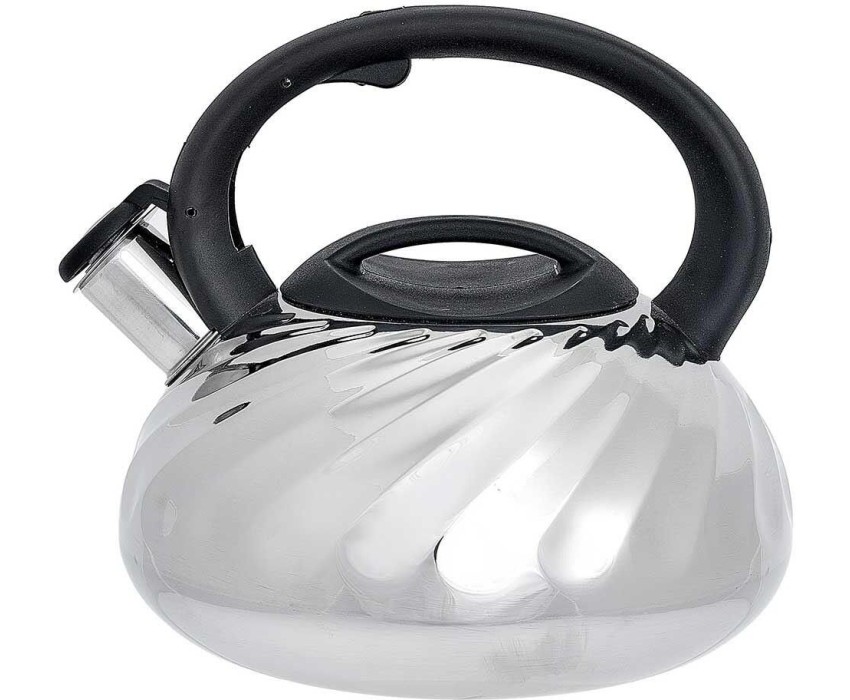 Объем 3 л Толщина стали 0,6 мм Чайник из нержавеющей стали со свистком Высококачественная нержавеющая сталь Зеркальная полировка Термосберегающее индукционное дно Нейлоновая ручка с кнопкой для открывания носика Цвет ручки: черный Пригоден для использования на всех типах кухонных плит Упаковка: цветная коробка