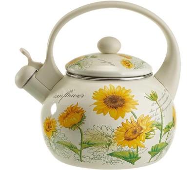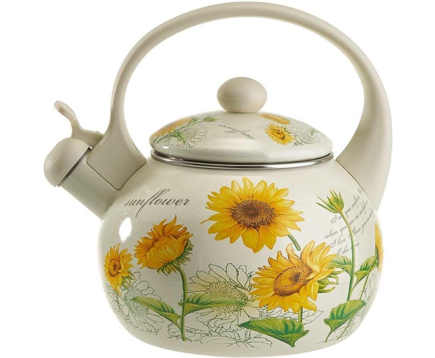 Параметры Объем 2,5 л Описание Чайник эмалированный со свистком Материалы: эмалированная сталь, нержавеющая сталь, пластик Серия: Подсолнухи Трехслойное внутреннее и внешнее эмалевое покрытие, устойчивое к воздействию пищевых кислот Эргономичная пластиковая ручка Зачерненное дно с повышенной термоотдачей Носик со свистком Классический дизайн Экологически чистые материалы Может быть использован на всех типах кухонных плит: электрических, газовых, керамических, индукционных Подходит для мытья в посудомоечной машине Упаковка: цветная коробка