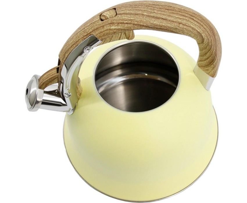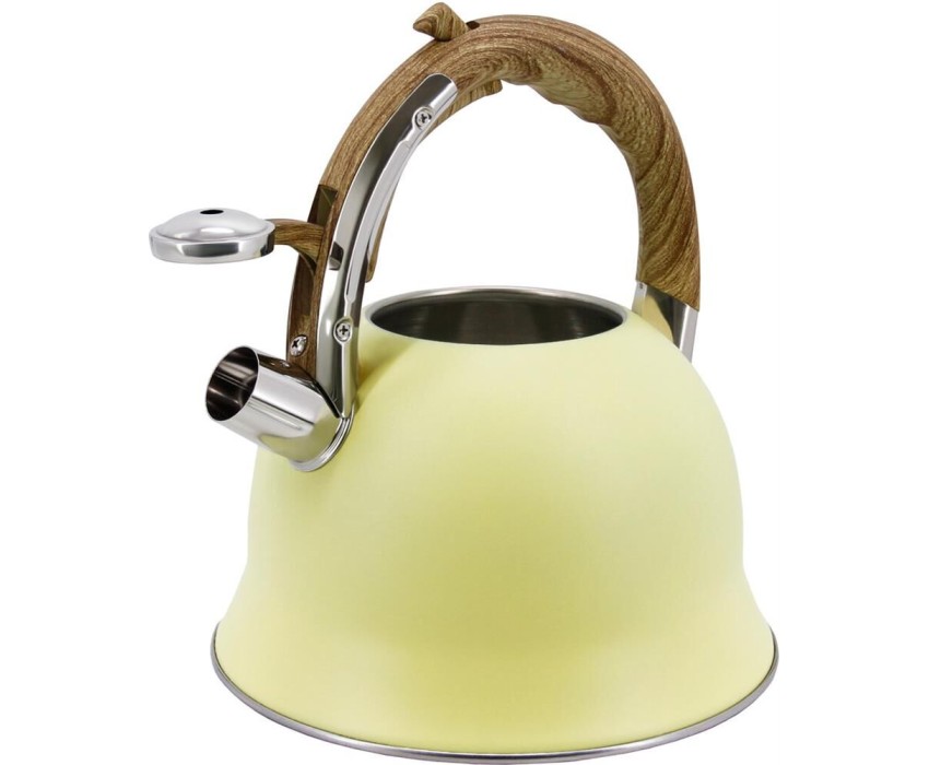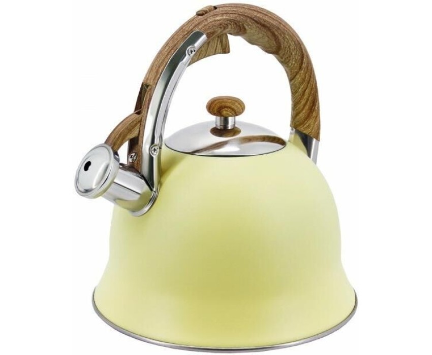 P-650208 Napoli Чайник со свистком, 2,5л. Модель выполнена по специальной пресс-форме с толщиной боковых стенок 0,4мм. Трехслойное дно, выполненное по технологии капсулирования, не деформируется и служит для равномерного распределения тепла. Ненагревающаяся нейлоновая ручка с кнопкой для открывания носика. Безопасный и громкий свисток вовремя проинформирует, что вода закипела. Высокопрочное покрытие чайника сохраняет отличный внешний вид изделия намного дольше.