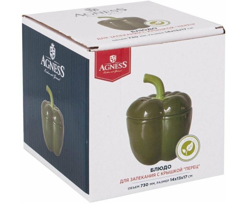 Блюдо для запекания AGNESS выполнено из качественной керамики. Оно подходит для запекания и тушения разнообразных блюд: мяса, птицы, овощей. Пища, приготовленная в керамической посуде, сохраняет свои вкусовые качества и не наносит вред здоровью человека, благодаря экологической чистоте материала. Керамика - один из самых лучших материалов, который удерживает тепло, медленно и равномерно его распределяет. Каждое блюдо вдохновлено природой и художественно имитирует овощ. Эстетичные крышки не только особенно хорошо дополняют дизайн, но и обеспечивают хорее накопление тепла внутри блюд для запекания AGNESS. Сочетания искусства, традиций, функциональности и вкуса – все это заставляет сердца гурманов биться быстрее. Данная посуда не впитывает посторонние запахи и легко чистится нейтральными моющими средствами. Можно мыть в посудомоечной машине. Керамическое блюдо AGNESS можно использовать в микроволновой печи и духовке при температуре не более 200°C, а также для хранения пищи в холодильник