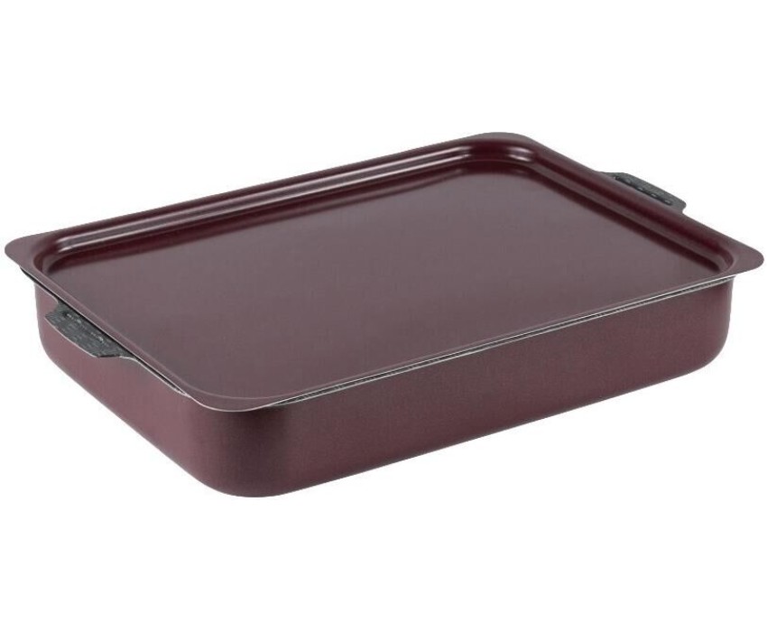 Легкий, удобный и красивый противень Кружево вместительной прямоугольной формы с крышкой и удобными ручками идеально подходит для приготовления десертов, запеканок и многослойных вторых блюд в духовке. Европейское антипригарное покрытие надежно защитит продукты от прилипания к стенкам и дну даже с минимальным использованием масла в режиме запекания. Внешнее декоративное покрытие рассчитано на интенсивное использование, легко моется и надолго сохраняет свой яркий цвет.