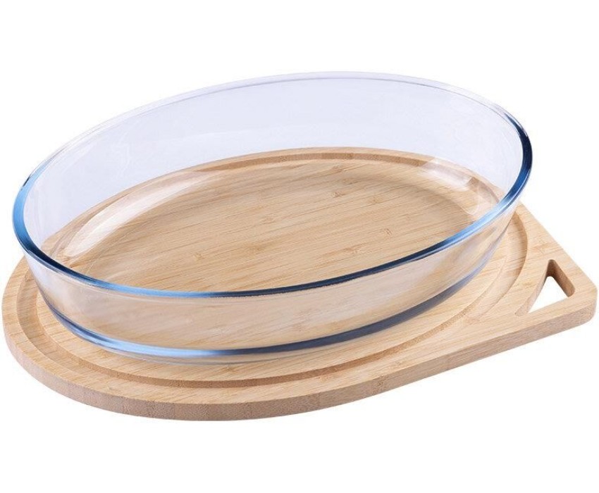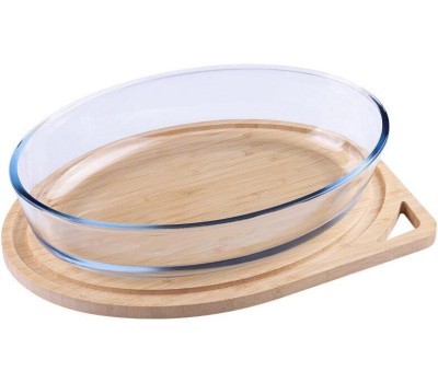 Форма для запекания 2,4 л, Cristallino, с бамбуковой крышкой 3 в 1, стеклянная, овальная Размер: 32,2x23,2x7,1 см. Лакированное покрытие бамбуковой крышки - дополнительная защита материала. Материал: боросиликатное стекло, бамбук. Упаковка: термоусадка+цв вкладыш, коробка с ячейками + стикер на боковой стекл части (артикул+инд ШК). *Крышка из лакированного бамбука может быть использована в качестве крышки для формы, разделочной доски, а также как подставка под горячее. Удобно, практично, многофункционально!